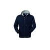 Felpa con chiusura centrale con cerniera in plastica, interno del cappuccio di colore a contrasto, cappuccio chiuso con cordino, parasudore interno al collo.