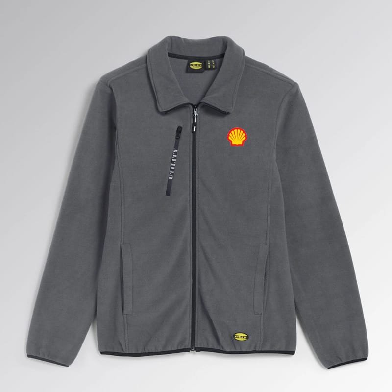 Pile full zip con doppia garzatura. Taschino al petto con wording Utility, tasche mani, fondo e polsini in materiale elastico.